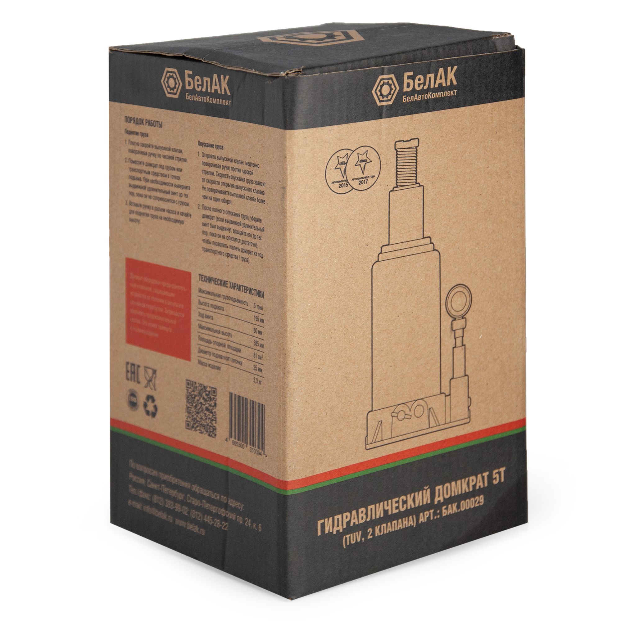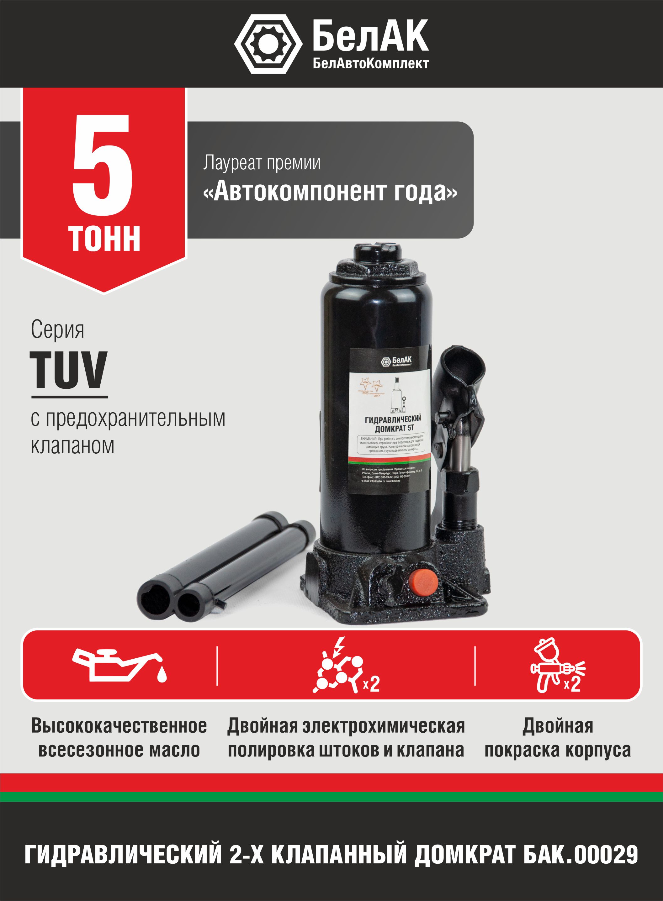 Домкрат гидравлический 5т БелАвтоКомплект (Санкт-Петербург) БелАК БАК00029