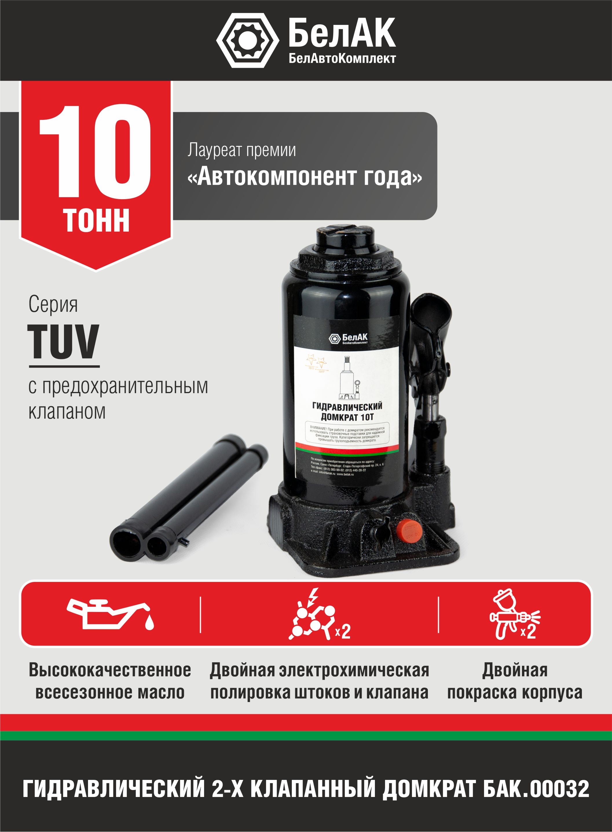 Домкрат гидравлический 10т БелАвтоКомплект (Санкт-Петербург) БелАК БАК00032