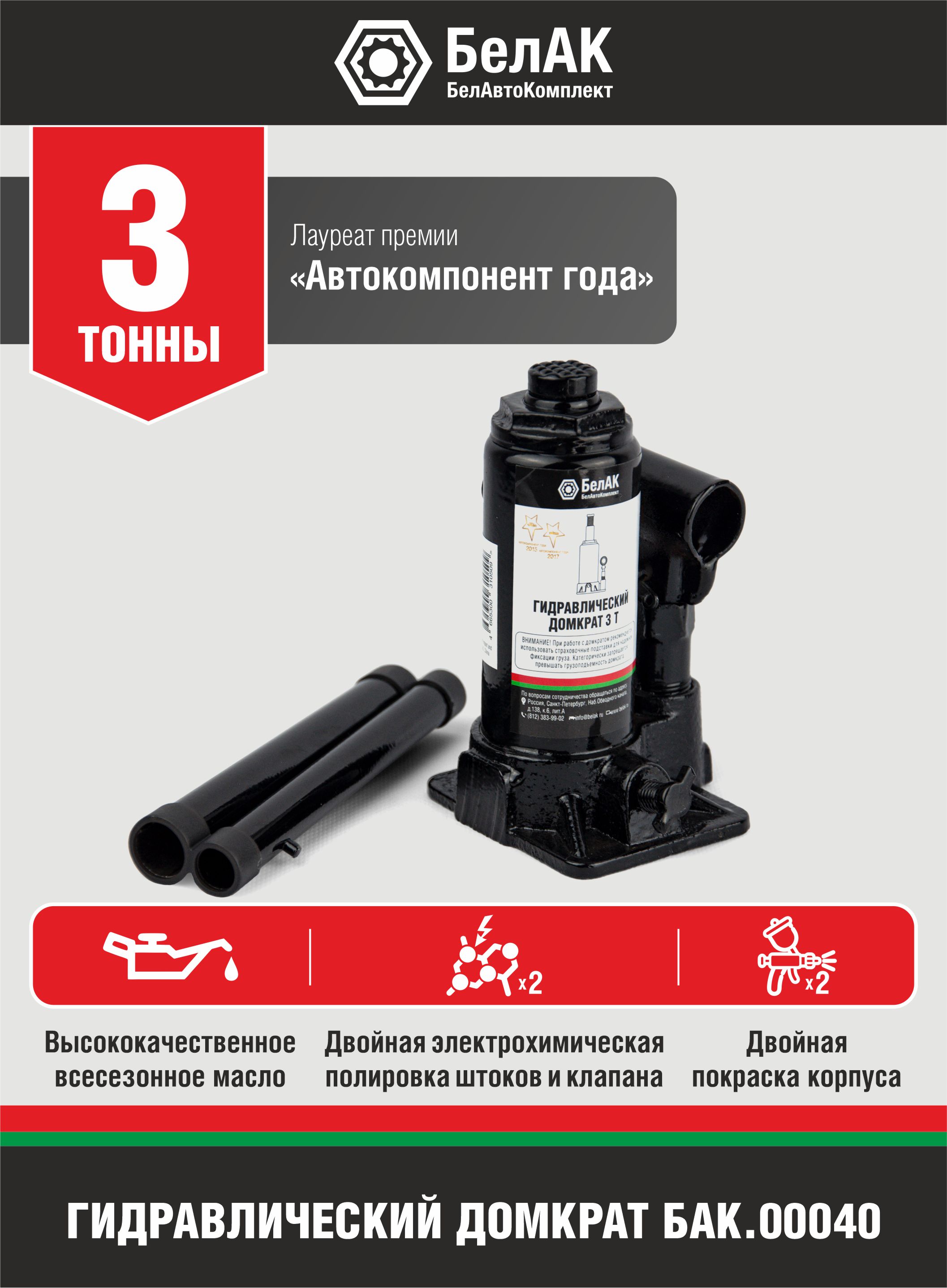 Домкрат гидравлический 3т БелАК БАК.00040 БАК00040