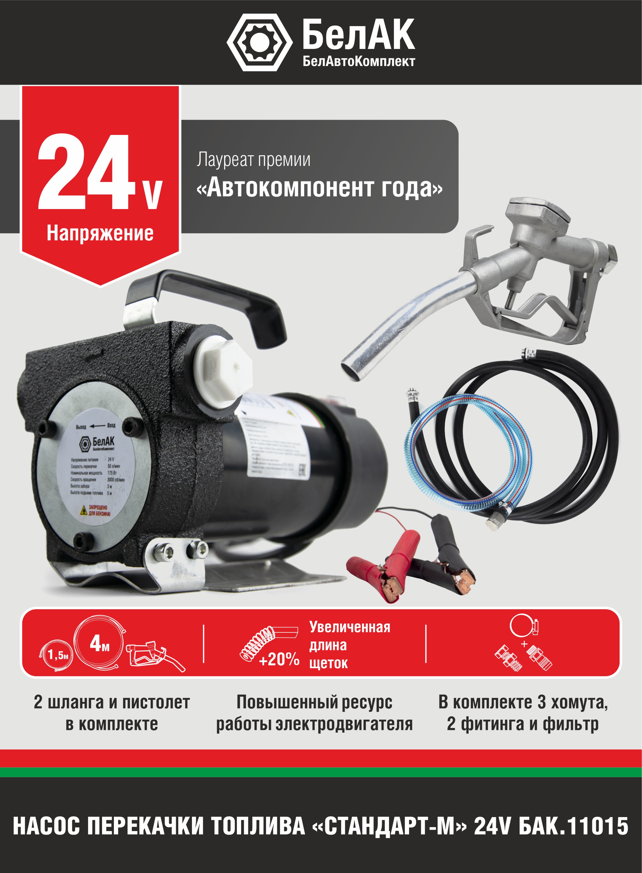 Насос для перекачки топлива 24V 50л/мин. Стандарт-м БЕЛАК БелАК бак11015