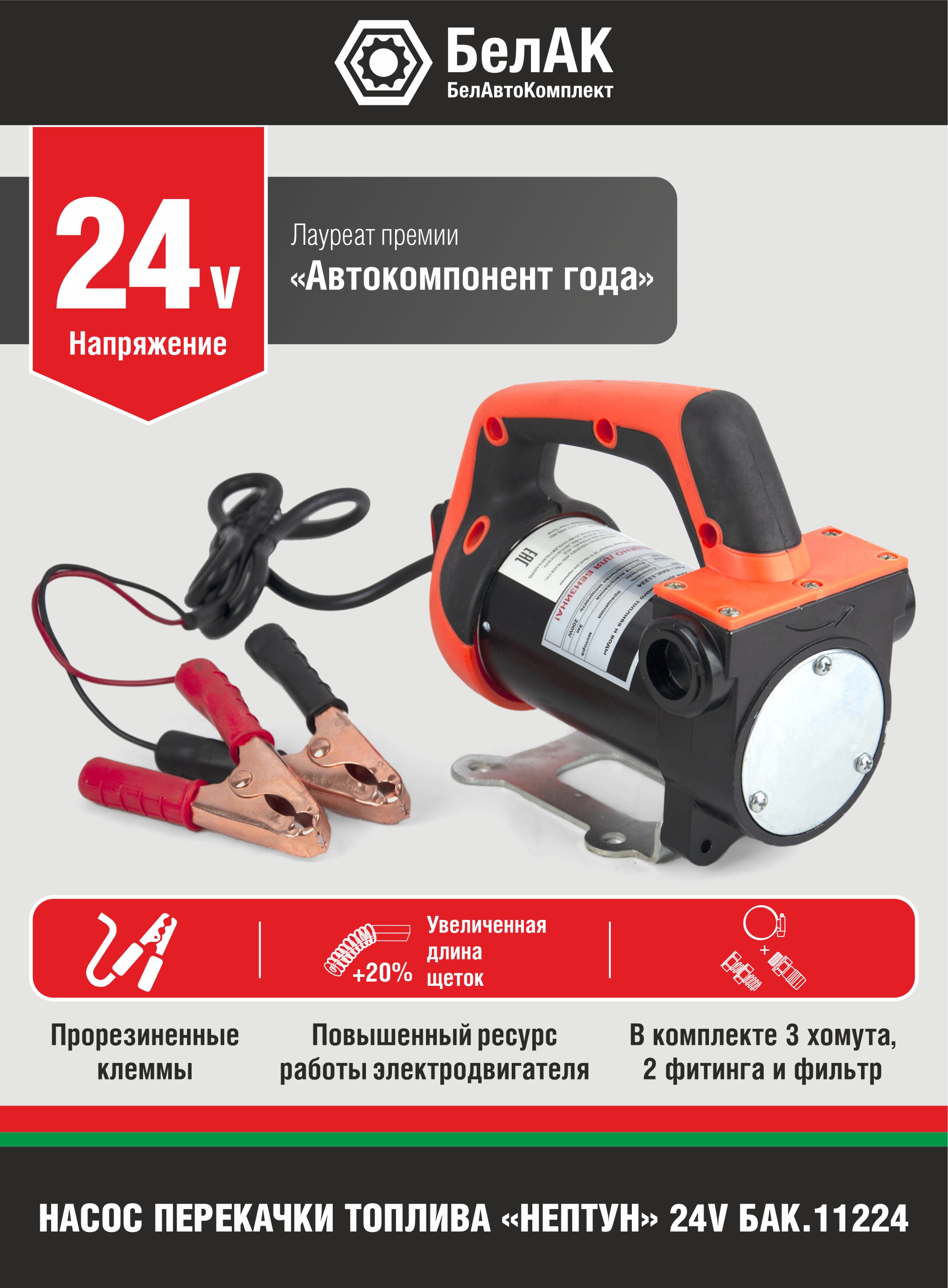 Насос для перекачки топлива и воды 24V 50 л/мин НЕПТУН КАМАЗ БелАвтоКомплект (Санкт-Петербург) БАК.11224 БелАК