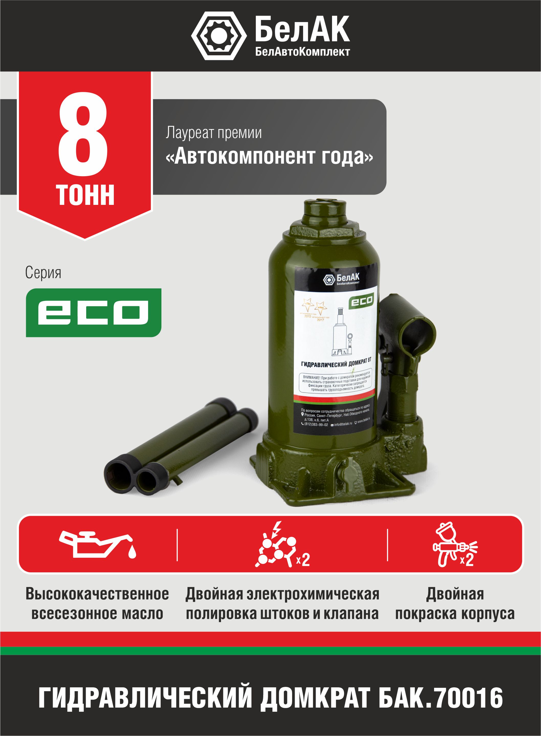 Домкрат ECO 8 тонн "БелАК" бак70016