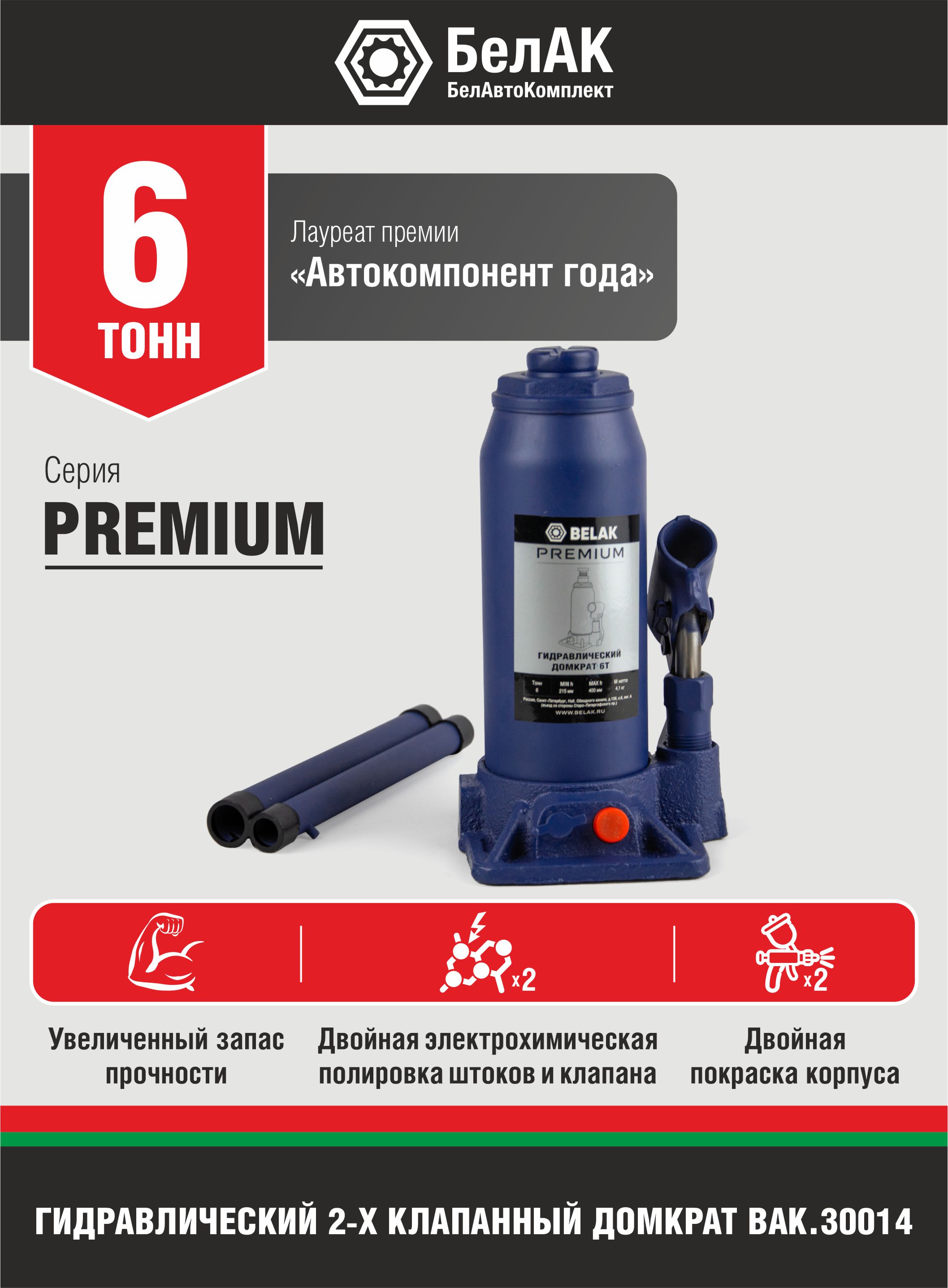 Домкрат гидравлический 6 т БелАК bak30014