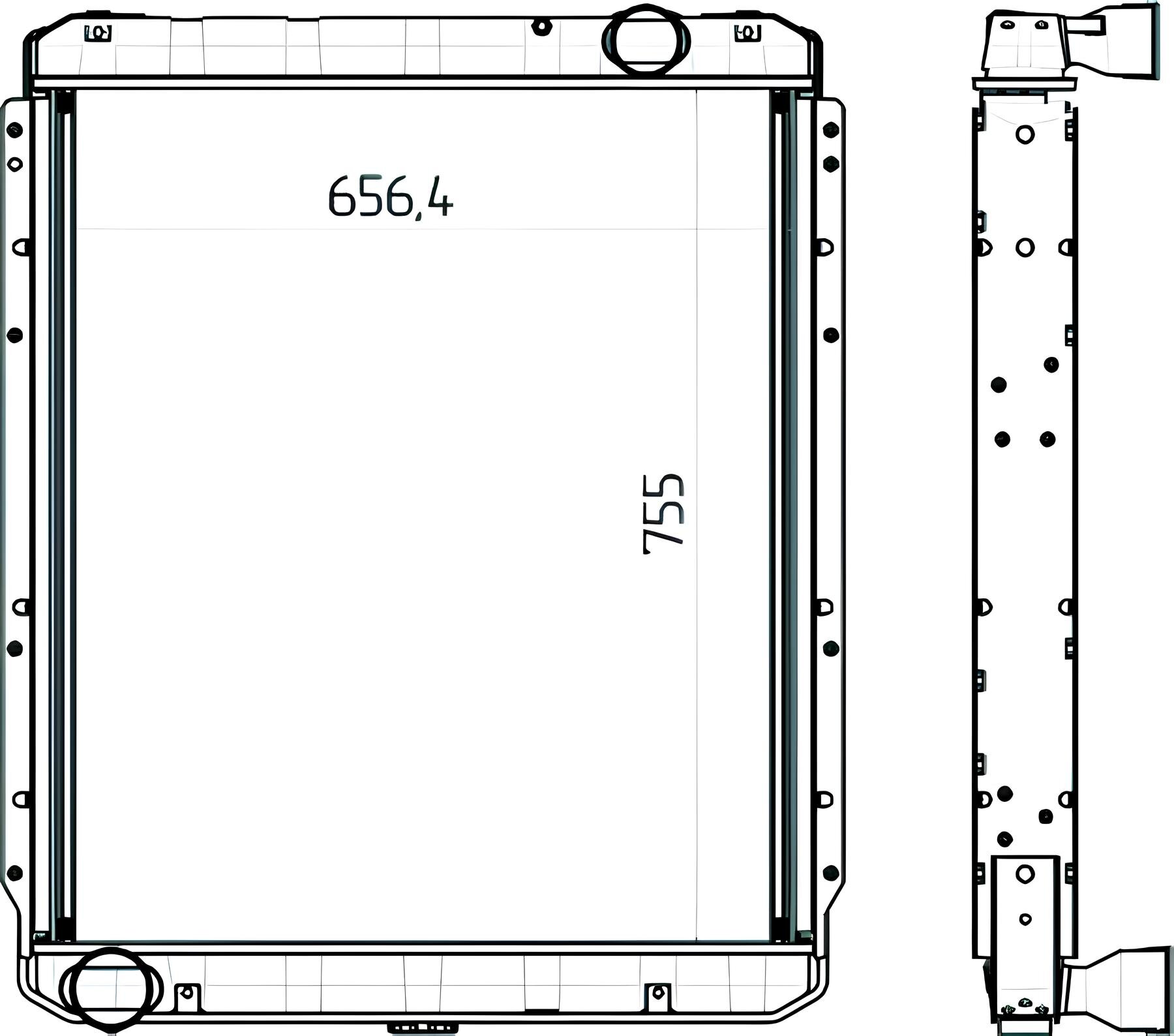 Габаритные р-ры, без вылета патрубков, мм: 742х91х906