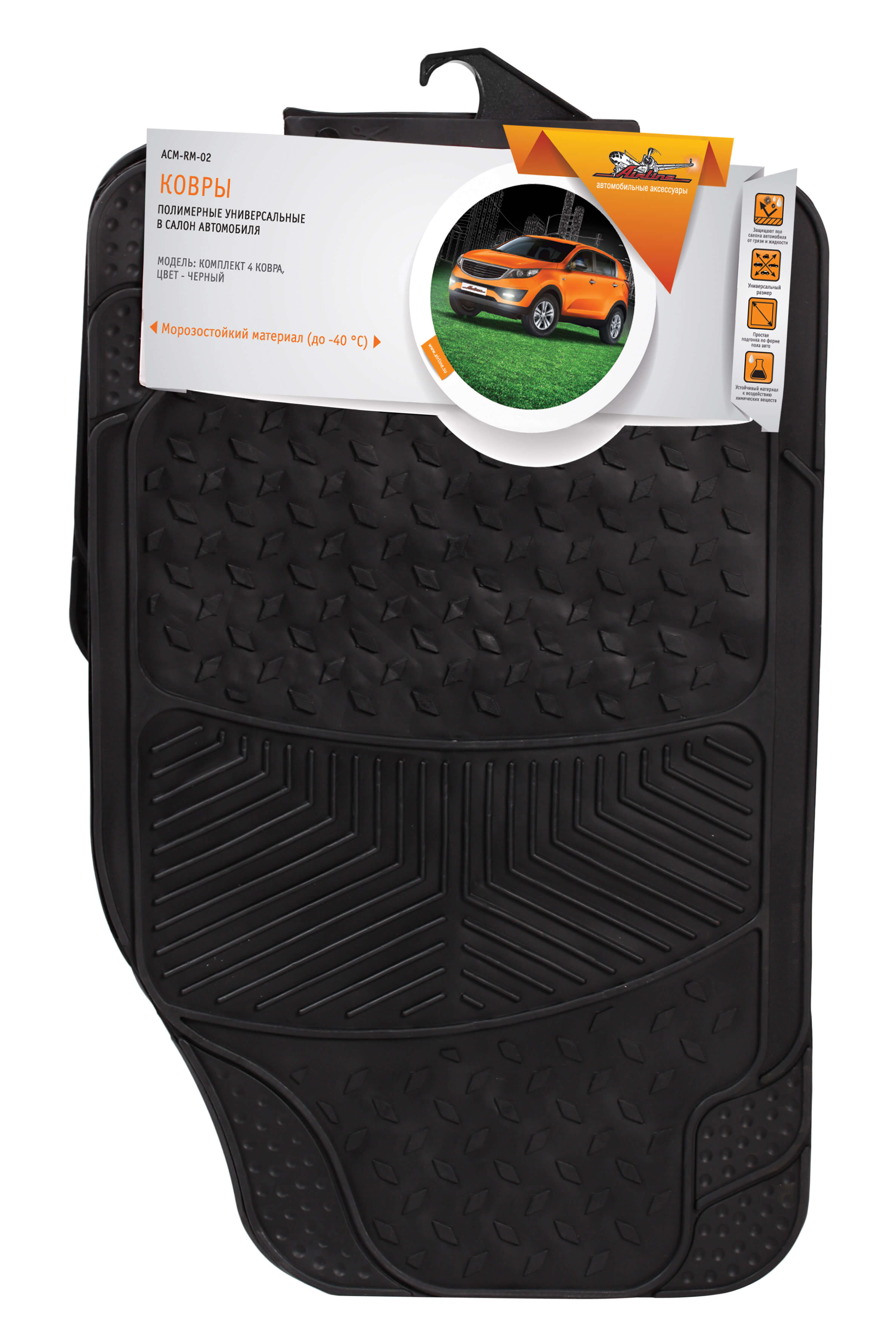 Ковры полимерные в салон автомобиля, универсальные, цвет черн., компл. 4 шт. (ACM-RM-02) Airline ACMRM02