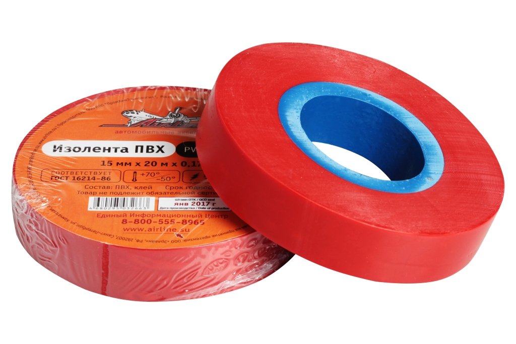 Изолента 15мм*20м красная ПВХ AIT-P-09