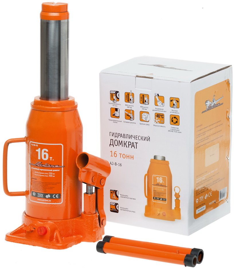 Домкрат 16т бутылочный MIN-250 мм MAX-490 мм AJ-B-16