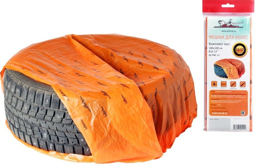 Пакеты для колес R12-17, 4 шт в пакете, 100х100 см, 18 мкм, оранж. (AO-PWC-15) Airline AOPWC15