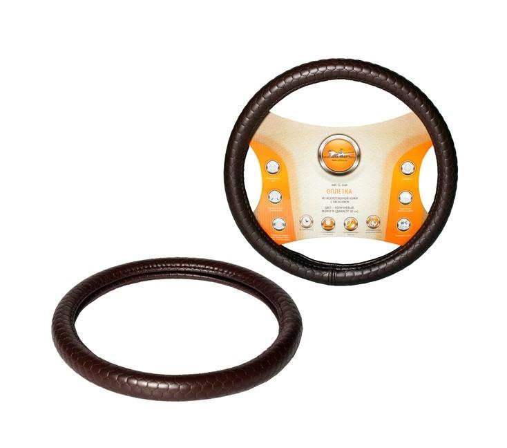 Оплетка на руль XL искусственная кожа с тиснением коричневая AWC-SL-04XL