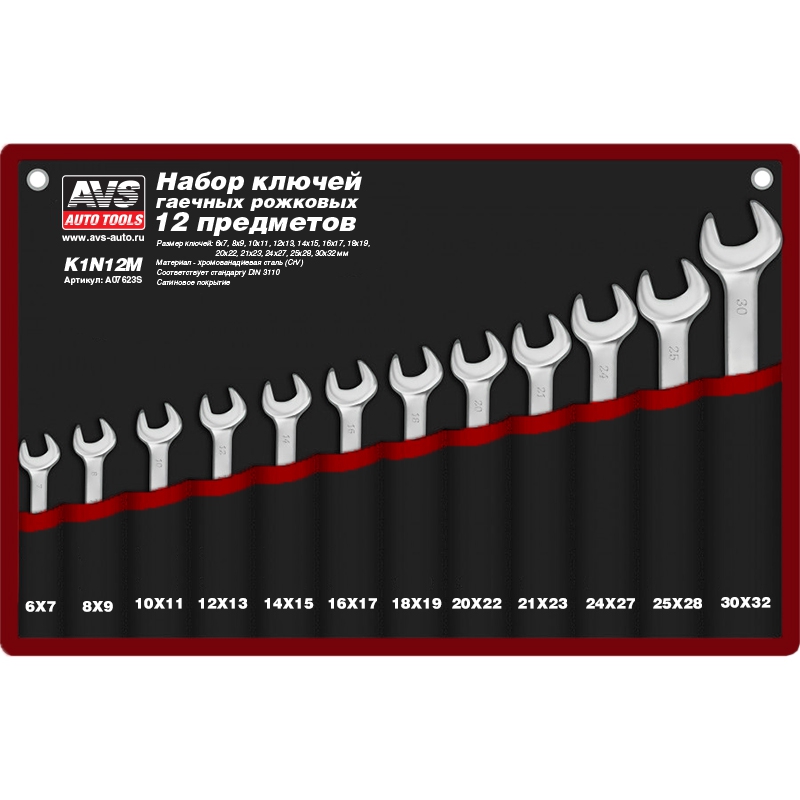 Набор ключей гаечных рожковых в сумке (6-32 мм) (12 предметов) AVS K1N12M, шт A07623S