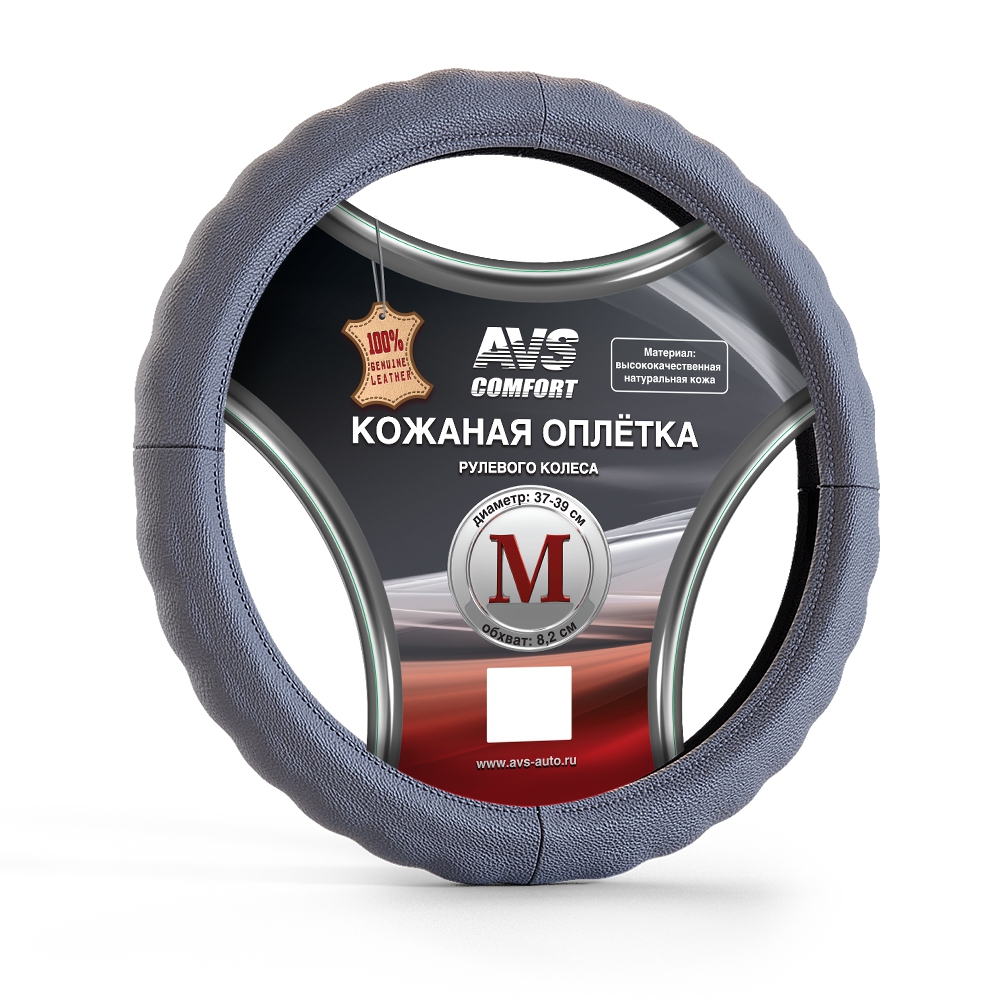 Оплетка на руль (нат. кожа) AVS GL-165M-GR (размер M, серый) A78652S