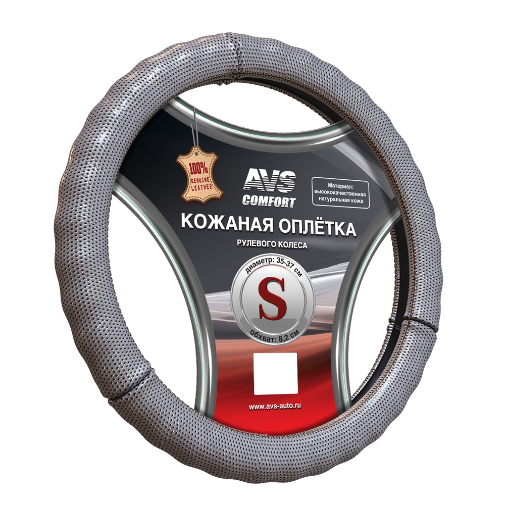 Оплетка на руль (нат. кожа) AVS GL-296S-GR (размер S, серый) - Серия 'Classic', шт A78666S