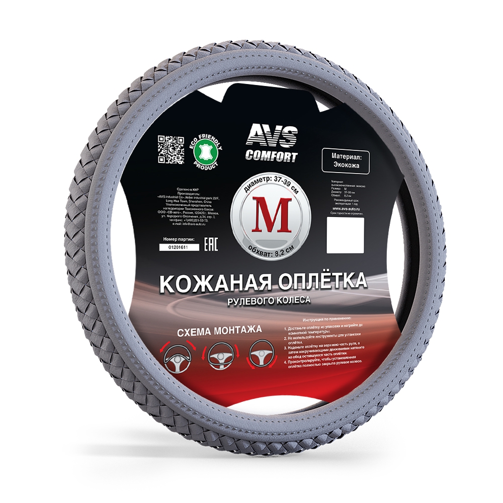 Оплетка на руль (эко-кожа) AVS SL-710M-GR ( размер M, серый) A78699S