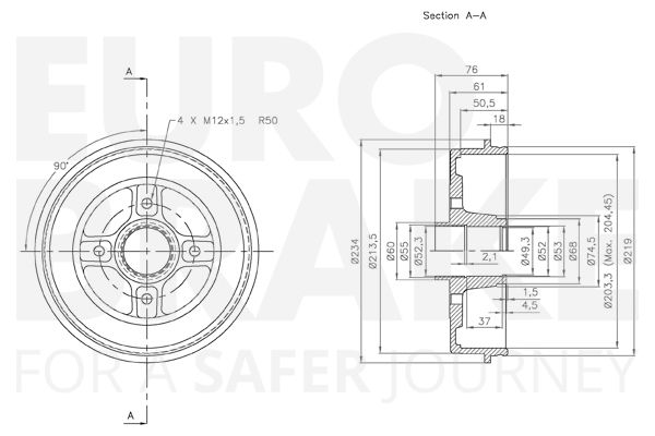 Макс. размер расточки тормозного барабана [мм]: 204.45