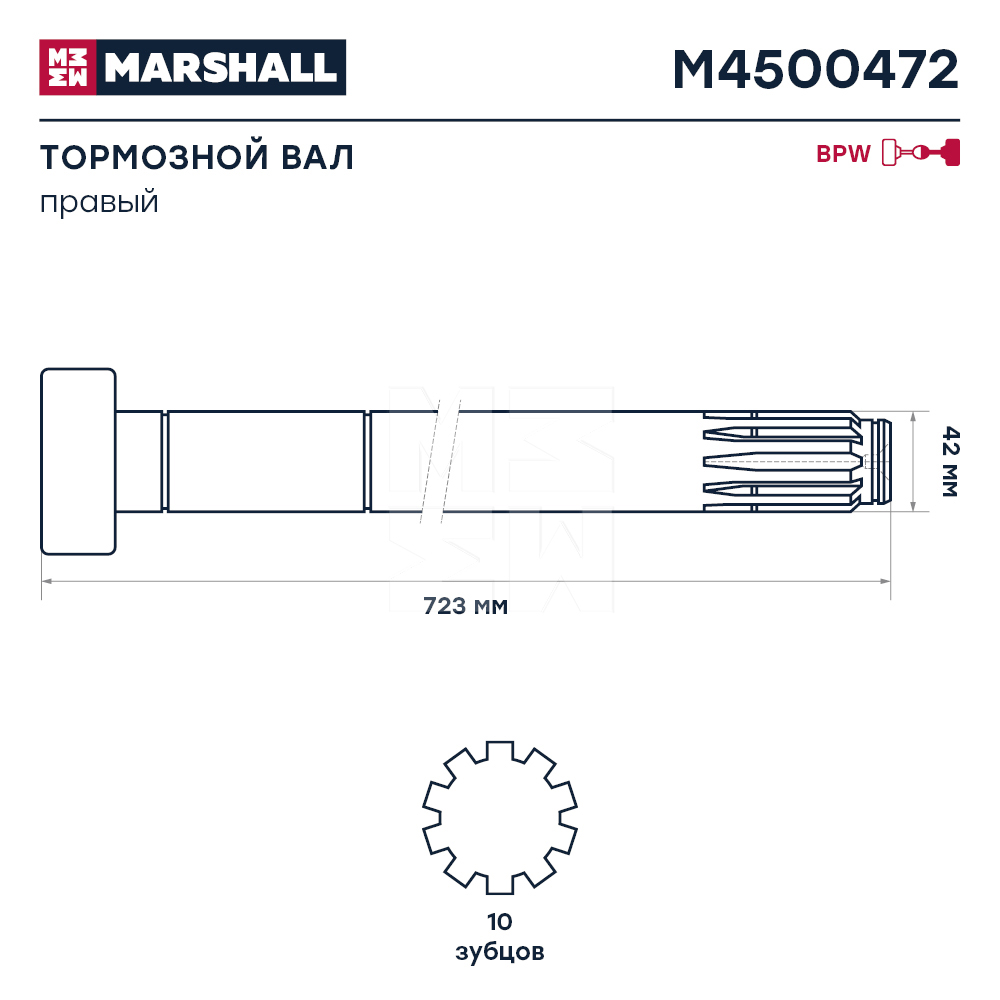 Вал тормозной правый L=723 BPW SN3015/3020 M4500472