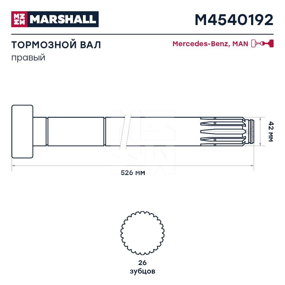 Вал тормозной L=525 D=42 задний правый MAN F90/2000 M4540192 Вал тормозной L=525 D=42 задний правый MAN F90/2000 M4540192