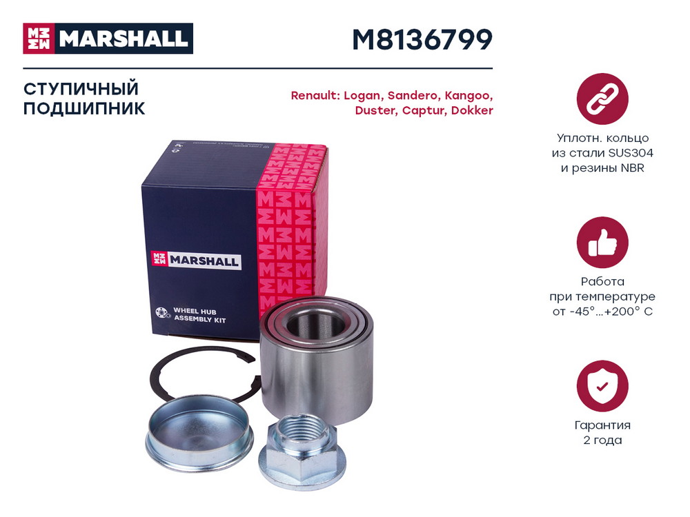 Подшипник ступ. к-кт задн. Renault Logan,Sandero II 13-/Captur 13-/Dokker 13-/Duster 12-/Kangoo 08- Marshall m8136799