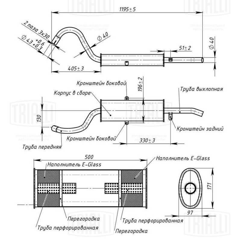 Глушитель для а/м Лада 2104 осн. (алюм. сталь) (EMM 0103) TRIALLI emm0103