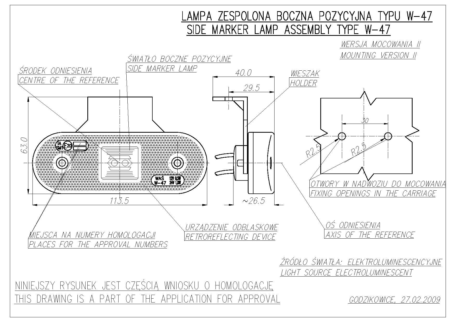 Фонарь габаритный 12-24V овальный желтый 2LED с проводом 229zW47 WAS