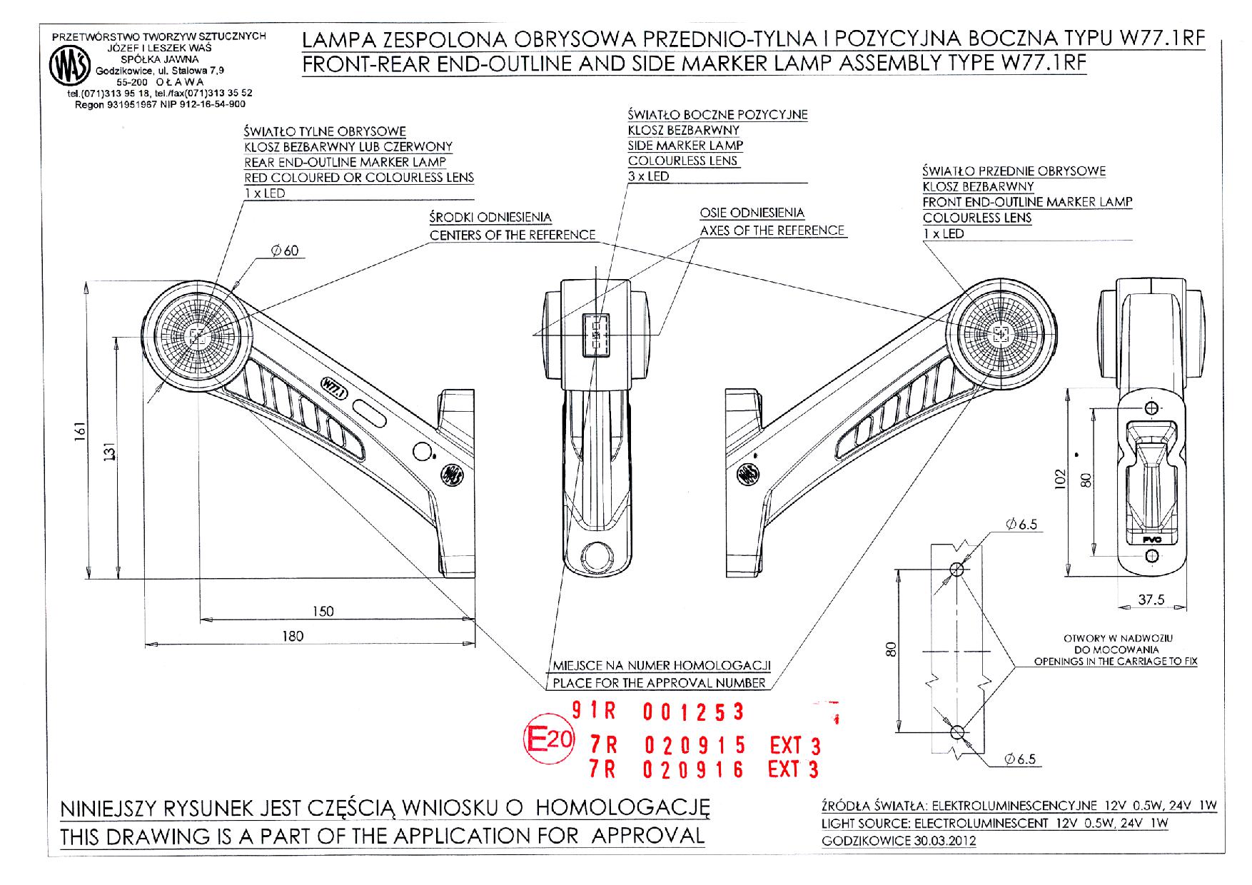 Рог-диод трехсторонний круглый правый 575BCPW771rf WAS